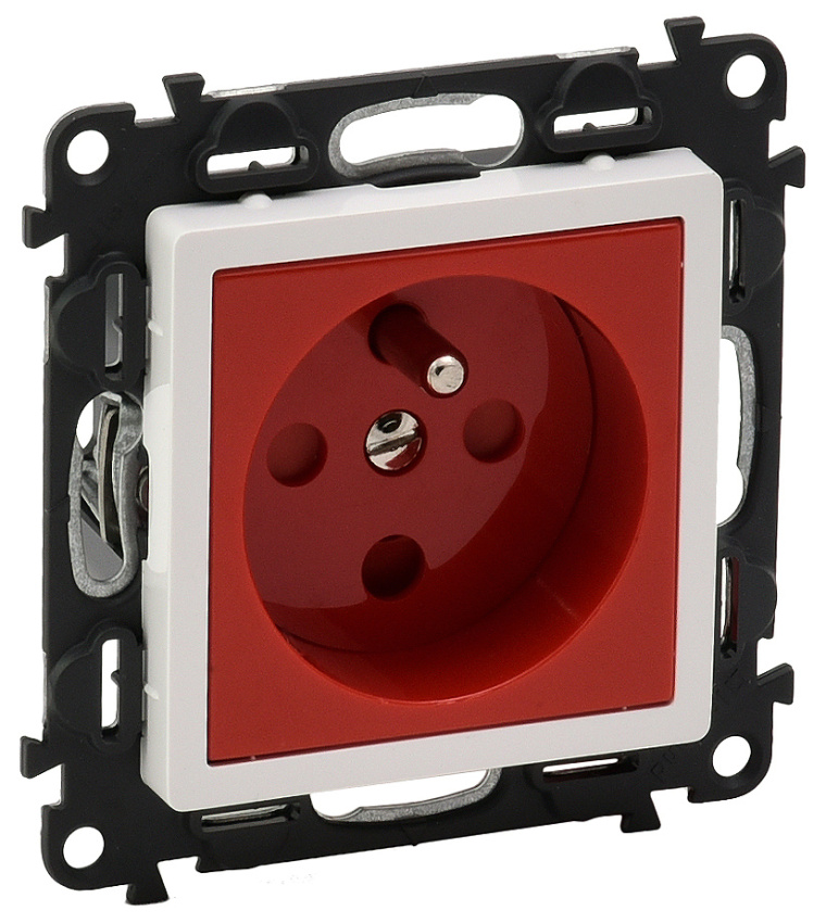 Zásuvka 2P + T nezáměnná s dětskou ochranou, bezšroubová, v červené barvě. 16 A - 250 V AC
