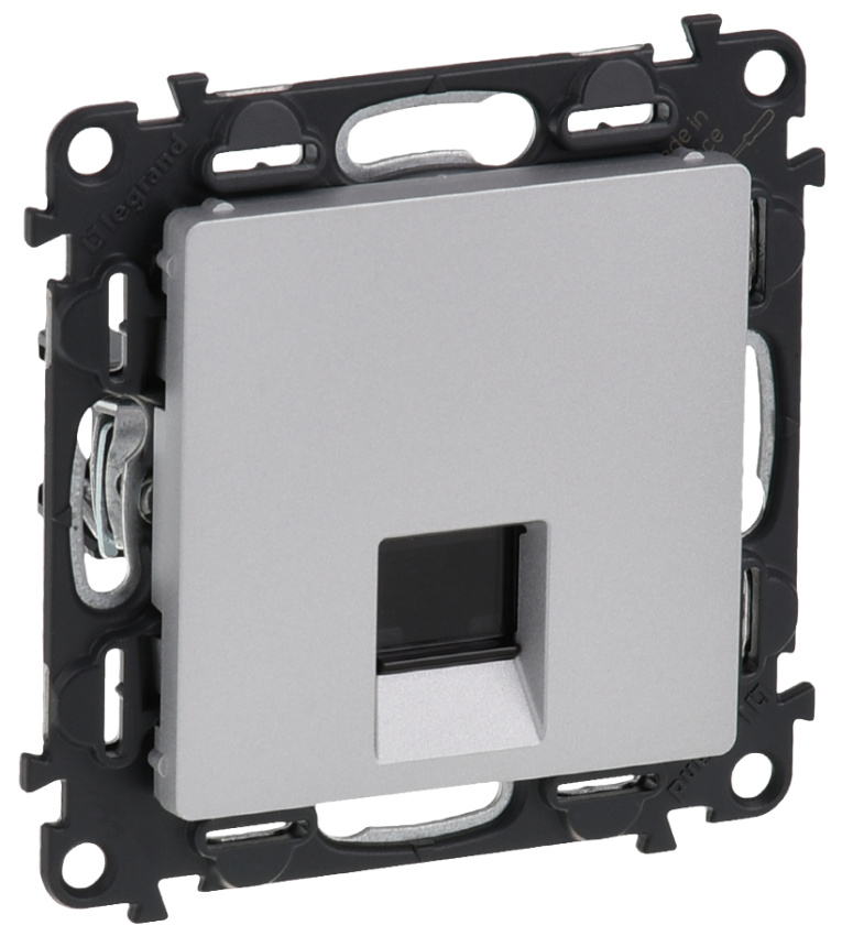 Zásuvka datová 1 x RJ 45 Cat.5e UTP LCS, zapojení bez použití nástroje, ve stříbrné barvě.
