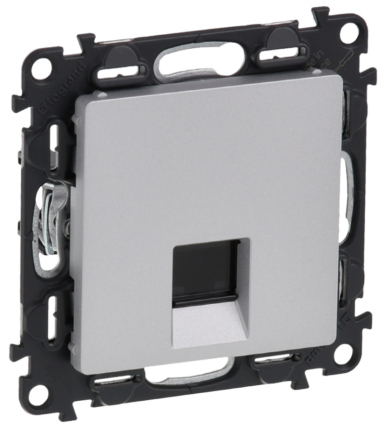 Zásuvka datová 1 x RJ 45 Cat.6 UTP LCS, zapojení bez použití nástroje, ve stříbrné barvě.
