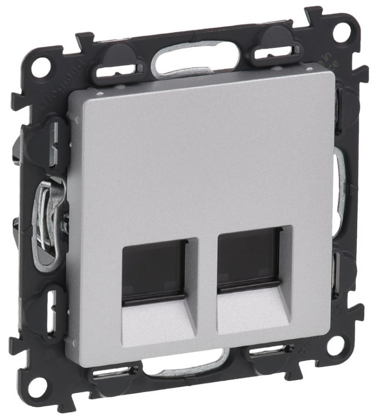 Zásuvka datová 2 x RJ 45 Cat.6 UTP LCS, zapojení bez použití nástroje, ve stříbrné barvě.
