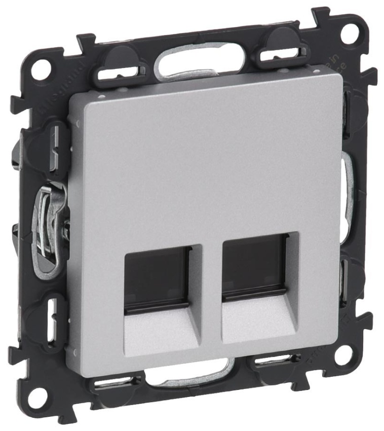 Zásuvka datová 2 x RJ 45 Cat.6 STP LCS, zapojení bez použití nástroje, ve stříbrné barvě.