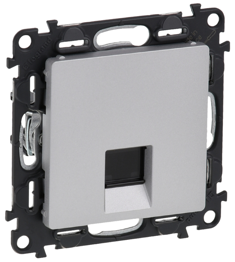 Zásuvka datová 1 x RJ 45 Cat.6A STP LCS, zapojení bez použití nástroje, ve stříbrné barvě.