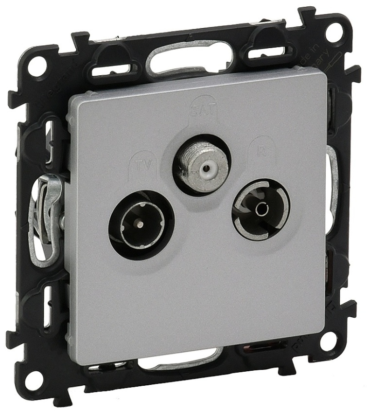 Koncová TV zásuvka TV-RD-SAT, ve stříbrné barvě.