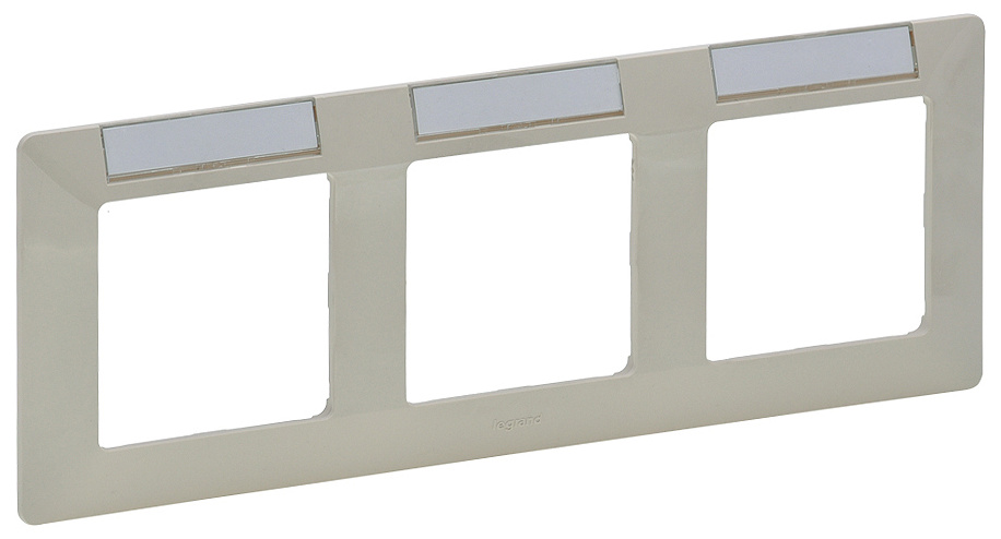 Rámeček trojnásobný s držákem štítků (vodorovná montáž), v béžové barvě.