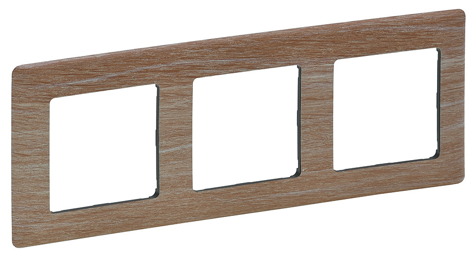 Trojnásobný rámeček v moderním dekoru světlého dřeva. Představuje jej řada Legrand Valena Life, která modernizovala oblíbenou Legrand Valena.