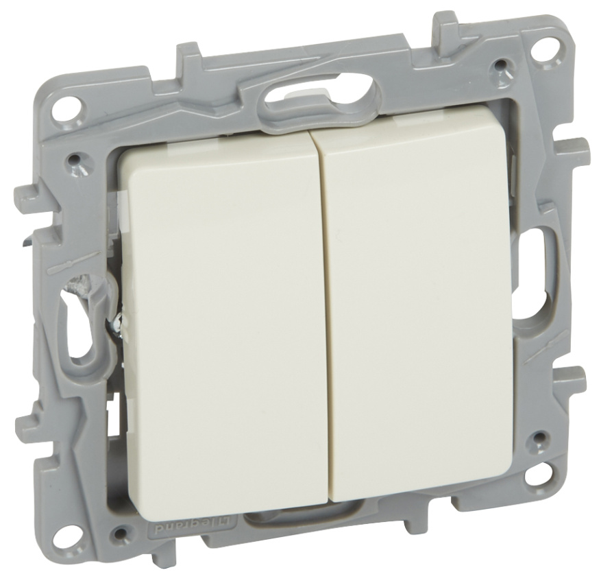 Dvojitý střídavý přepínač ř.6+6, bezšroubový v béžové barvě. 10AX-250∿
