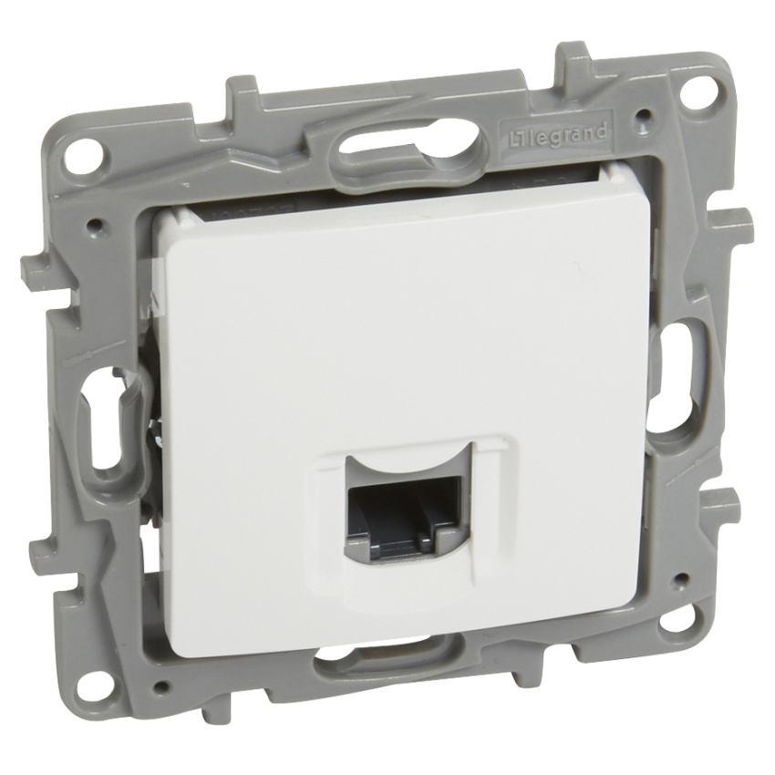 Zásuvka 1 x RJ45 kat. 6 UTP, v bílé barvě.
