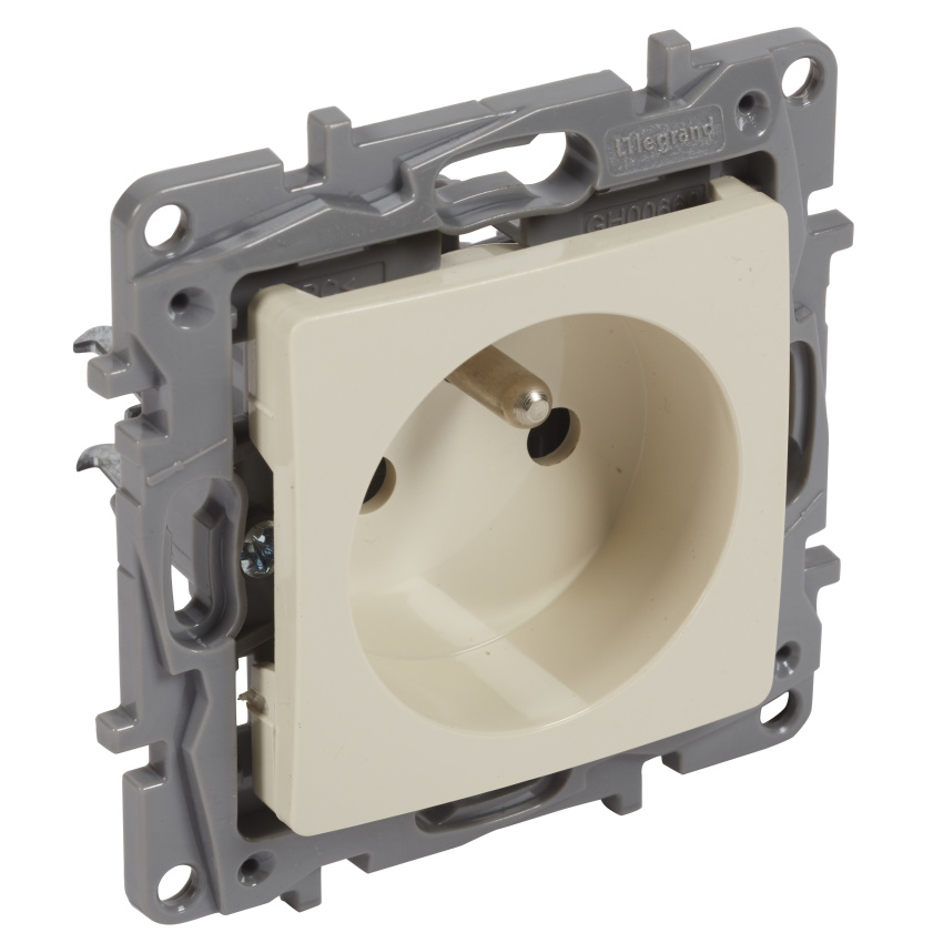 Zásuvka 2P + T bez dětské ochrany, šroubová v béžové barvě. 16A - 250