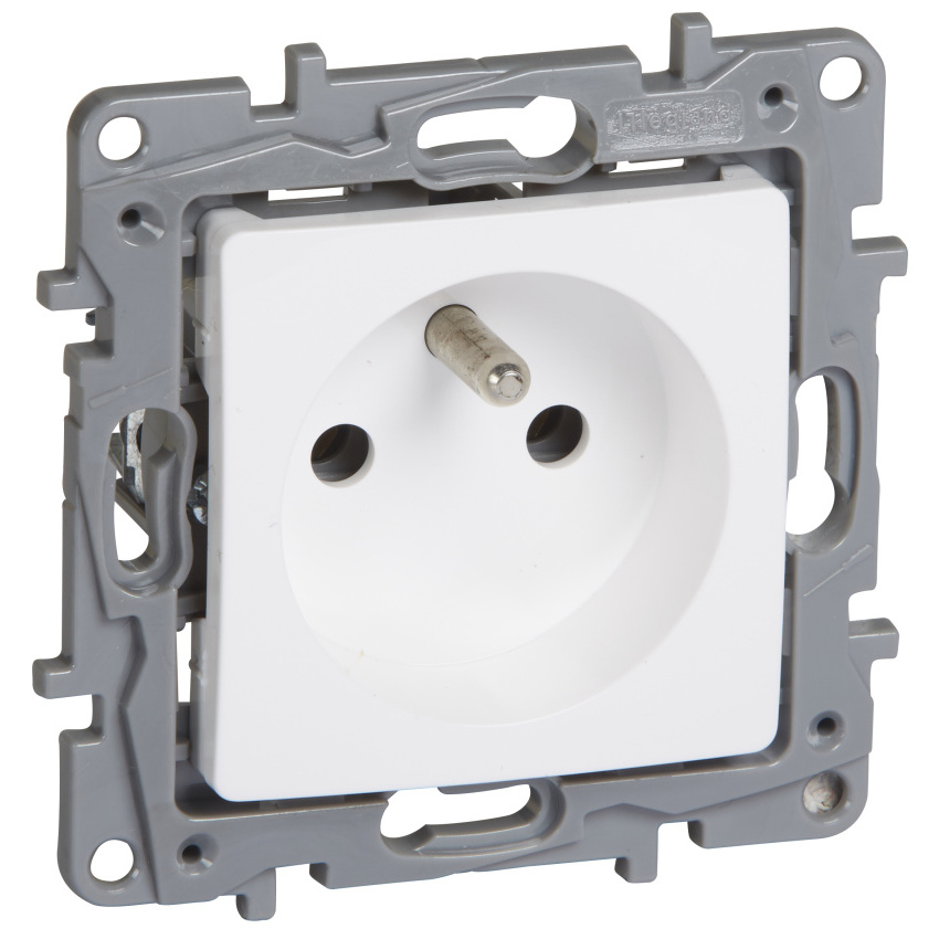 Zásuvka 2P + T bez dětské ochrany, šroubová v bílé barvě. 16A - 250