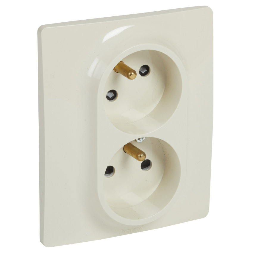 Zásuvka 2x2P + T s dětskou ochranou, šroubová v béžové barvě. 16A - 250