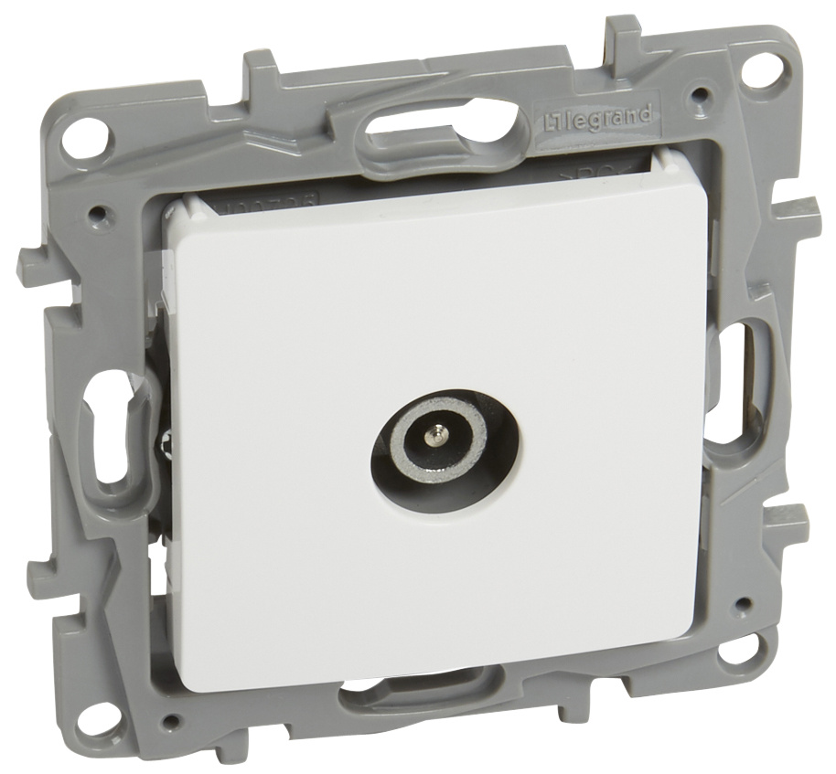 Zásuvka TV (samec) koncová, v bílé barvě.