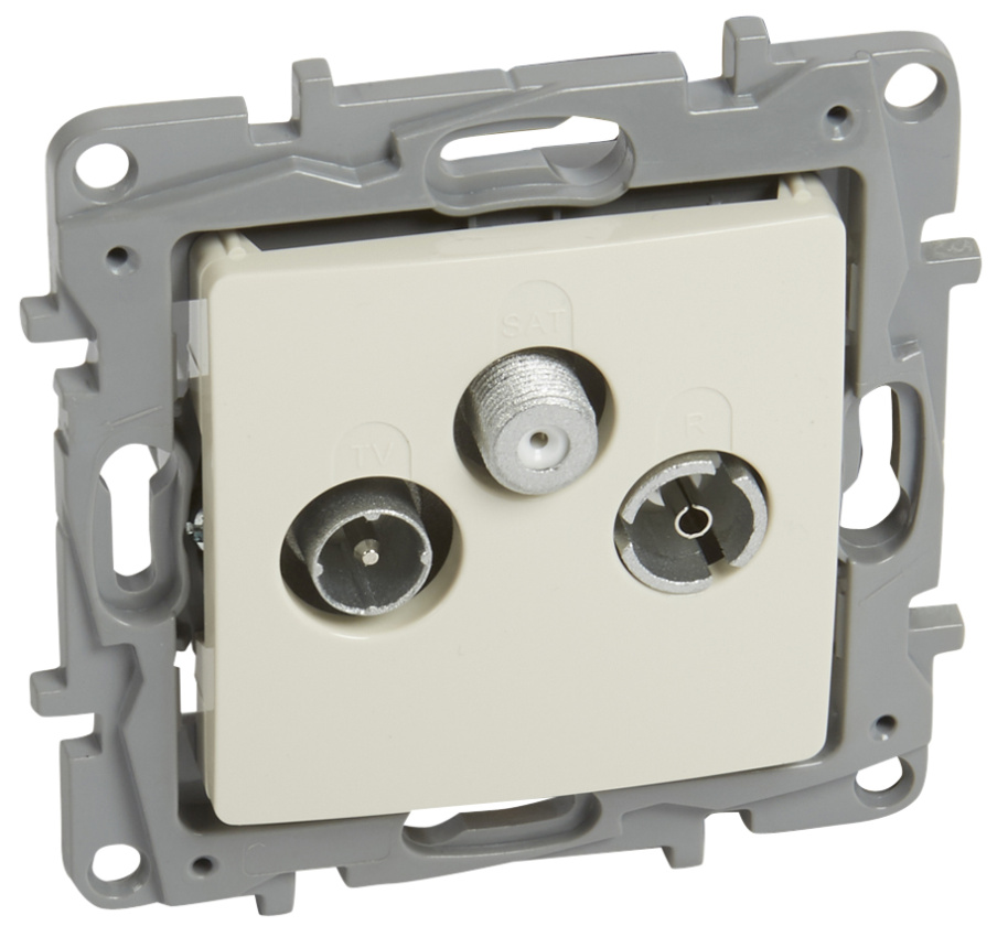 Zásuvka TV-RD-SAT koncová, v béžové barvě.