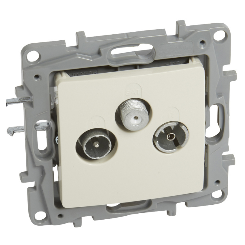 Zásuvka TV-RD-SAT průběžná, v béžové barvě.