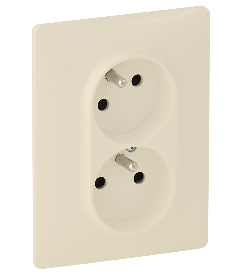 Dvojzásuvka 2x 2P + T s přepěťovou ochranou III st. třídy D, s dětskou ochranou, bezšroubová, v béžové barvě. 16 A - 250 V AC