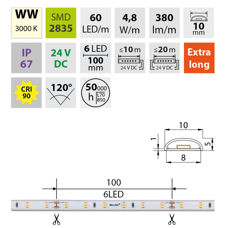 | Výkon světelného zdroje na metr | 4.8 W |