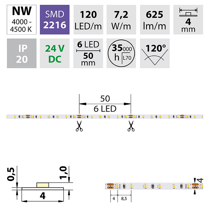 | Počet LED na metr | 120 |
