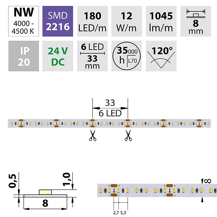 | Jmenovitá životnost L70/B10 při 25 °C | 35000 h |