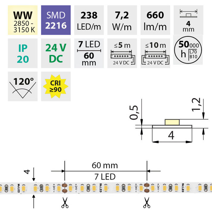 | Jmenovitá životnost L70/B10 při 25 °C | 50000 h |