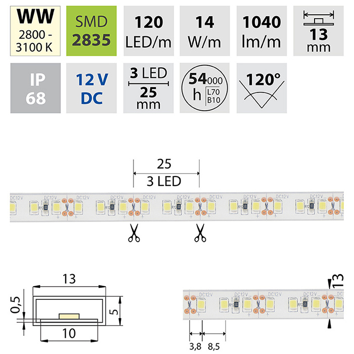 | Jmenovitá životnost L70/B10 při 25 °C | 54000 h |