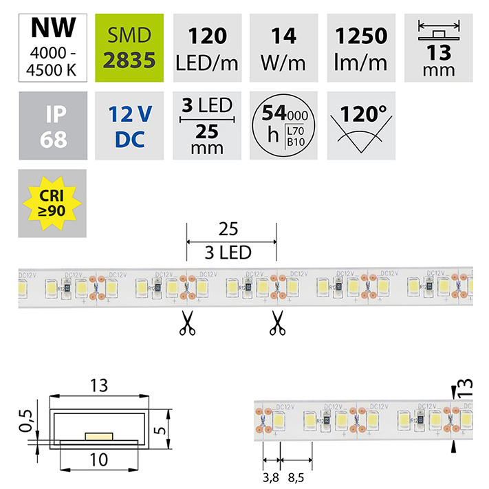 | Počet LED na metr | 120 |
