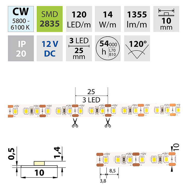 | Jmenovitá životnost L70/B10 při 25 °C | 54000 h |
