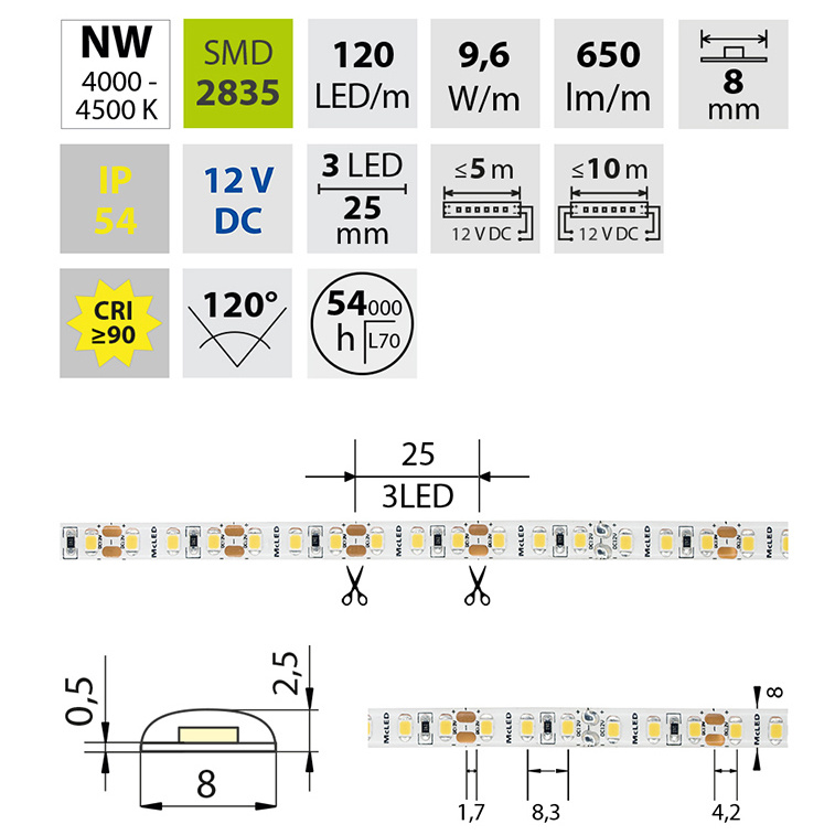 | Počet LED na metr | 120 |