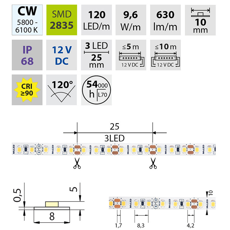 | Jmenovitá životnost L70/B10 při 25 °C | 54000 h |