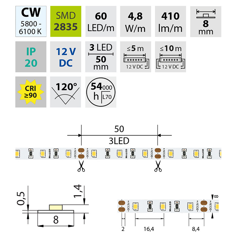 | Jmenovitá životnost L70/B10 při 25 °C | 54000 h |