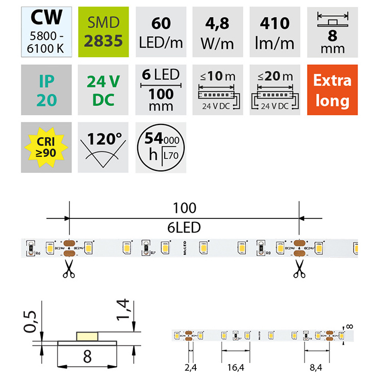 | Světelný tok na metr | 410 lm |