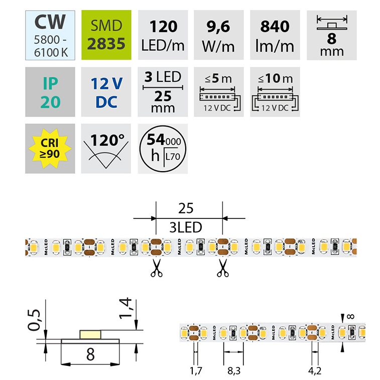 | Počet LED na metr | 120 |