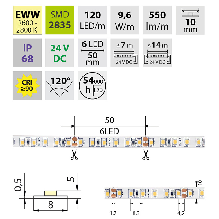| Počet LED na metr | 120 |