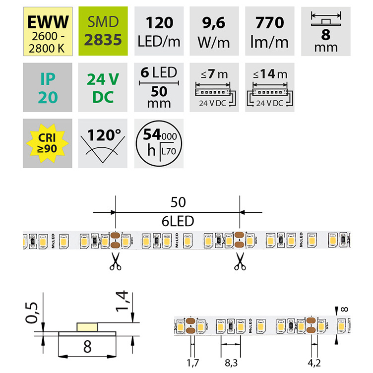 | Index podání barev (CRI) | 90-100 (třída 1A) |