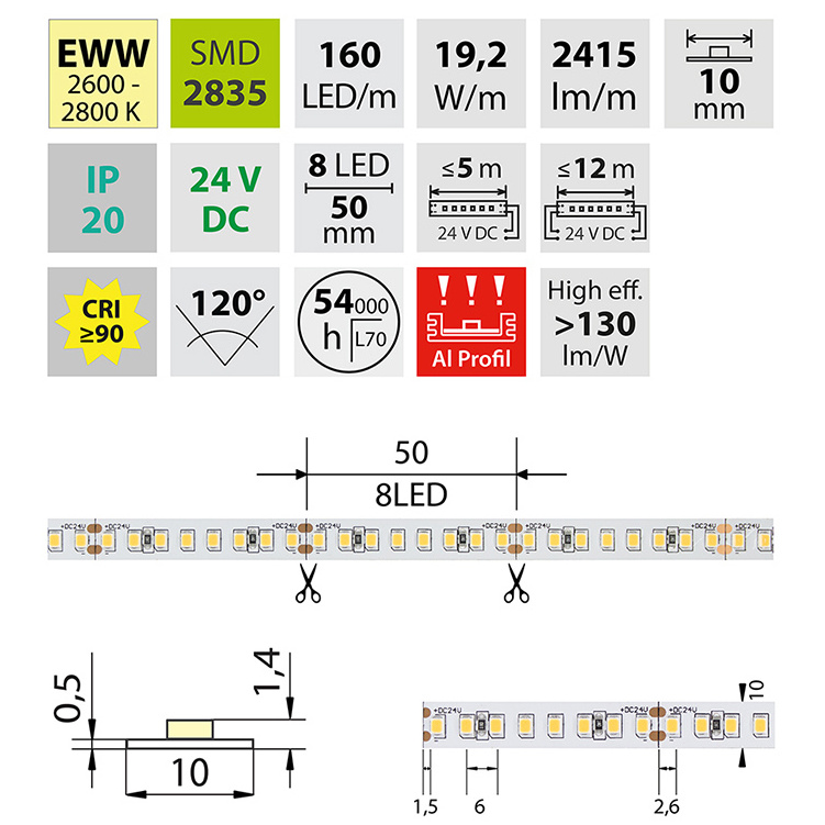 | Jmenovitá životnost L70/B10 při 25 °C | 54000 h |