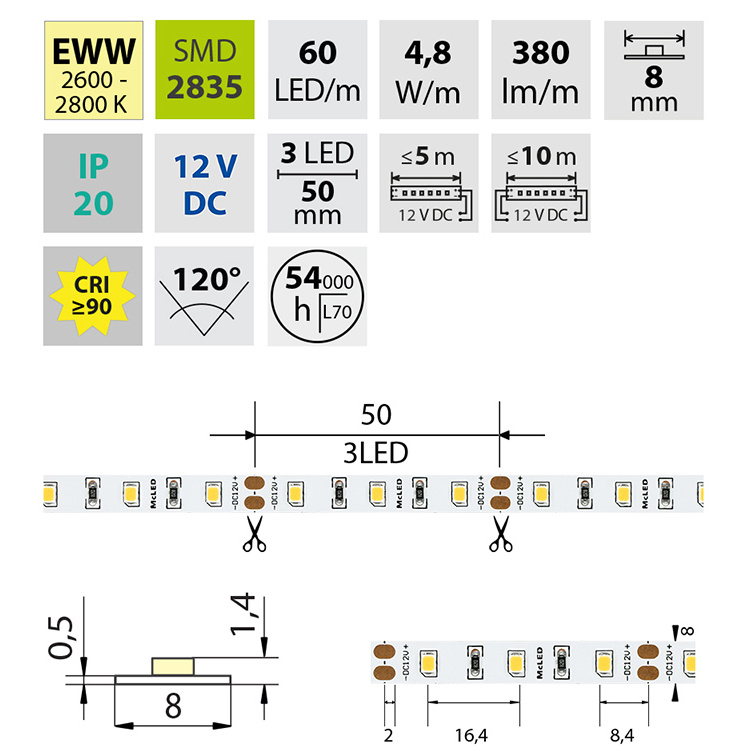| Výkon světelného zdroje na metr | 4.8 W |