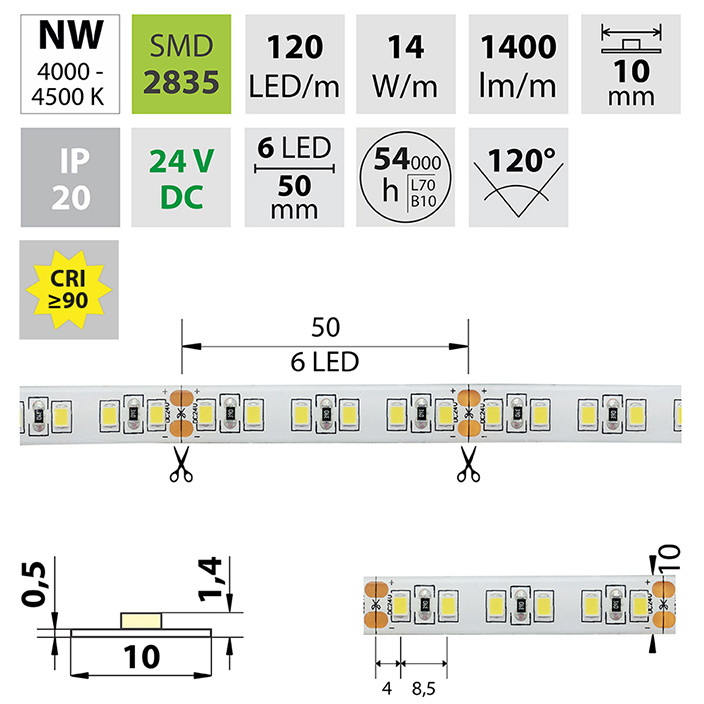 | Počet LED na metr | 120 |
