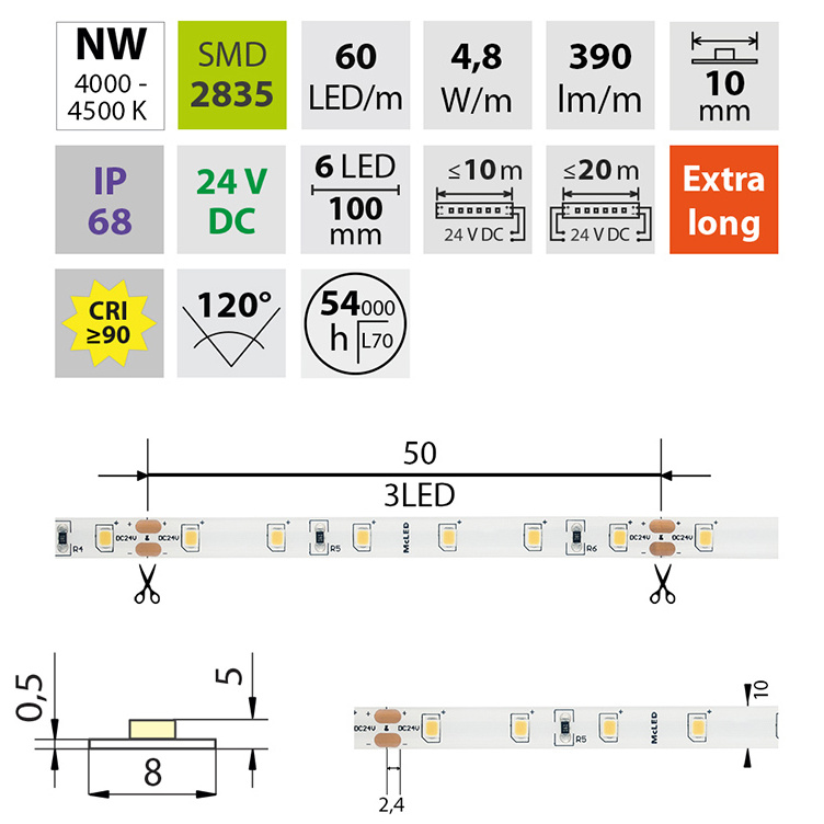 | Výkon světelného zdroje na metr | 4.8 W |