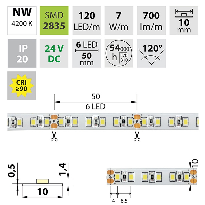 | Index podání barev (CRI) | 90-100 (třída 1A) |