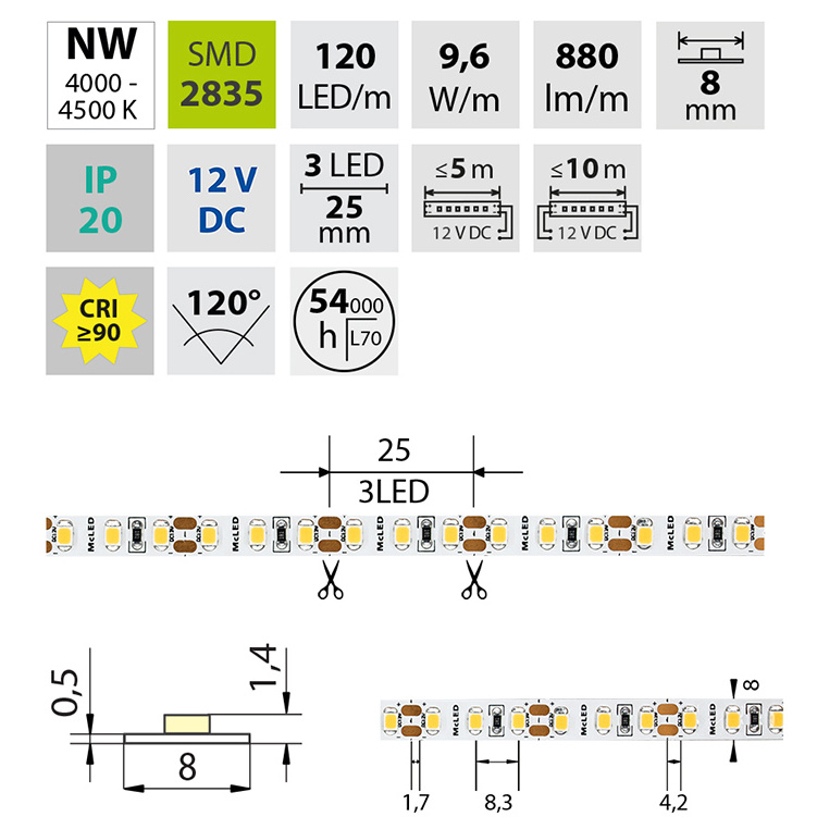 | Počet LED na metr | 120 |