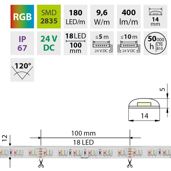 | Počet LED na metr | 180 |