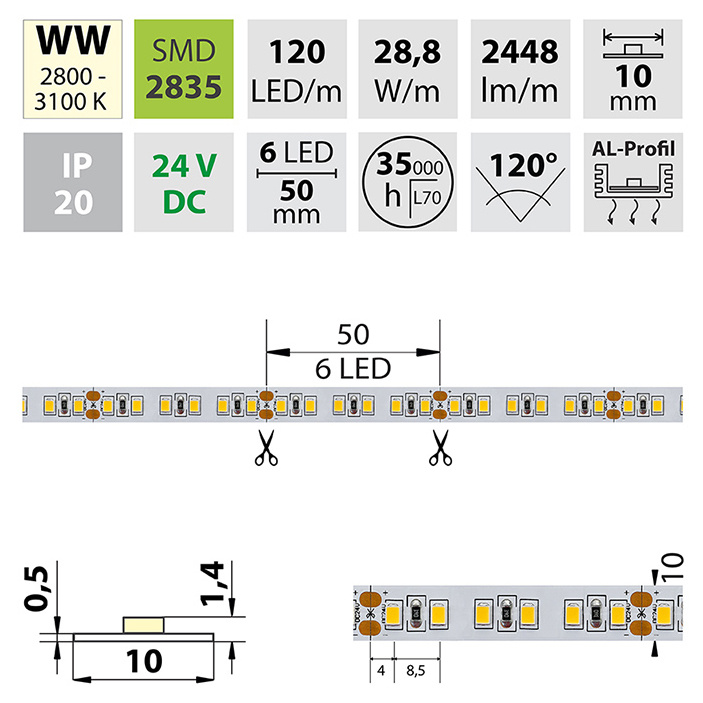 | Počet LED na metr | 120 |