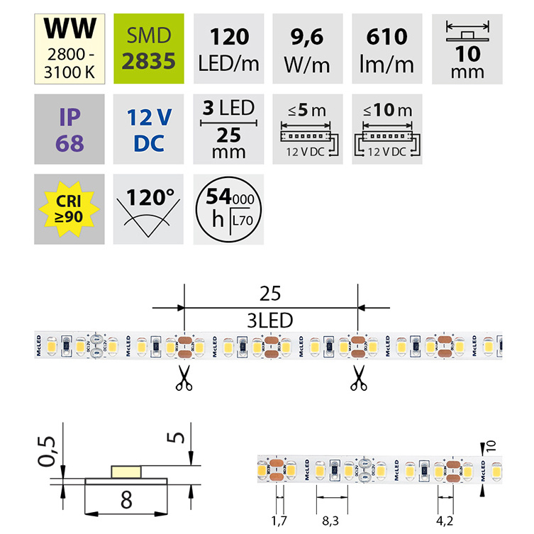 | Počet LED na metr | 120 |