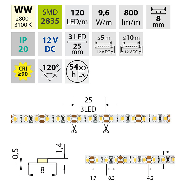 | Počet LED na metr | 120 |
