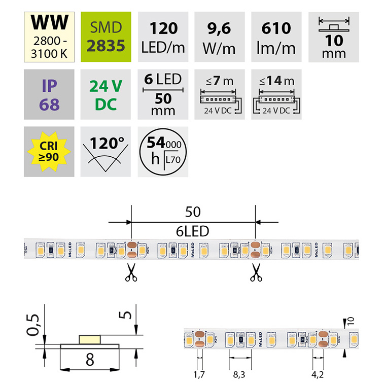 | Počet LED na metr | 120 |
