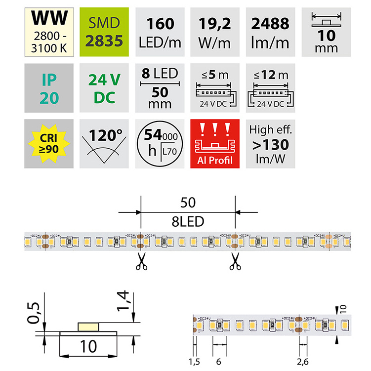 | Počet LED na metr | 160 |