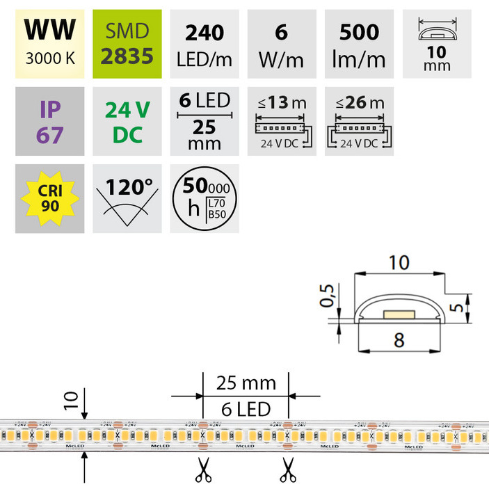 | Jmenovitá životnost L70/B10 při 25 °C | 50000 h |