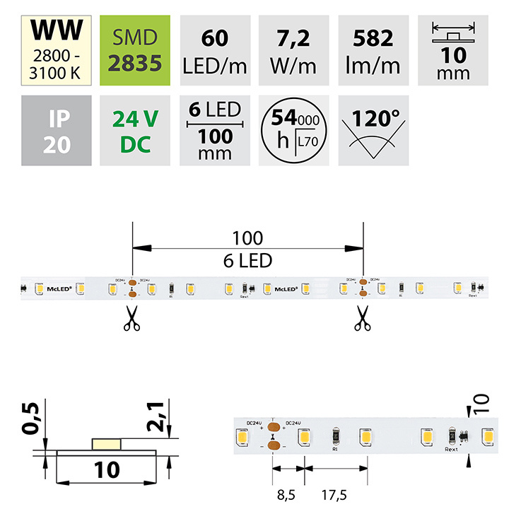 | Jmenovitá životnost L70/B10 při 25 °C | 54000 h |