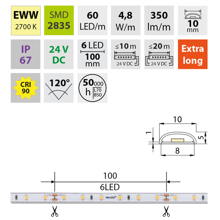| Index podání barev (CRI) | 90-100 (třída 1A) |