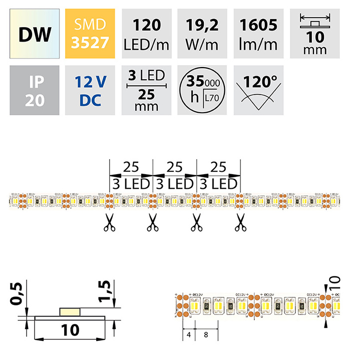 | Počet LED na metr | 120 |