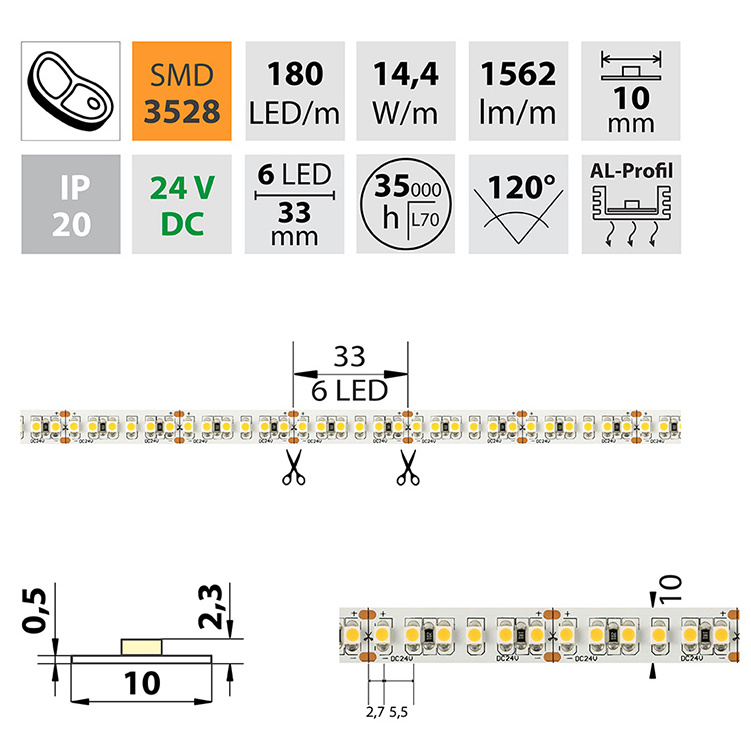 | Počet LED na metr | 180 |