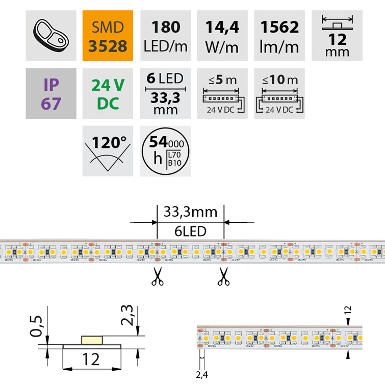 | Jmenovitá životnost L70/B10 při 25 °C | 54000 h |